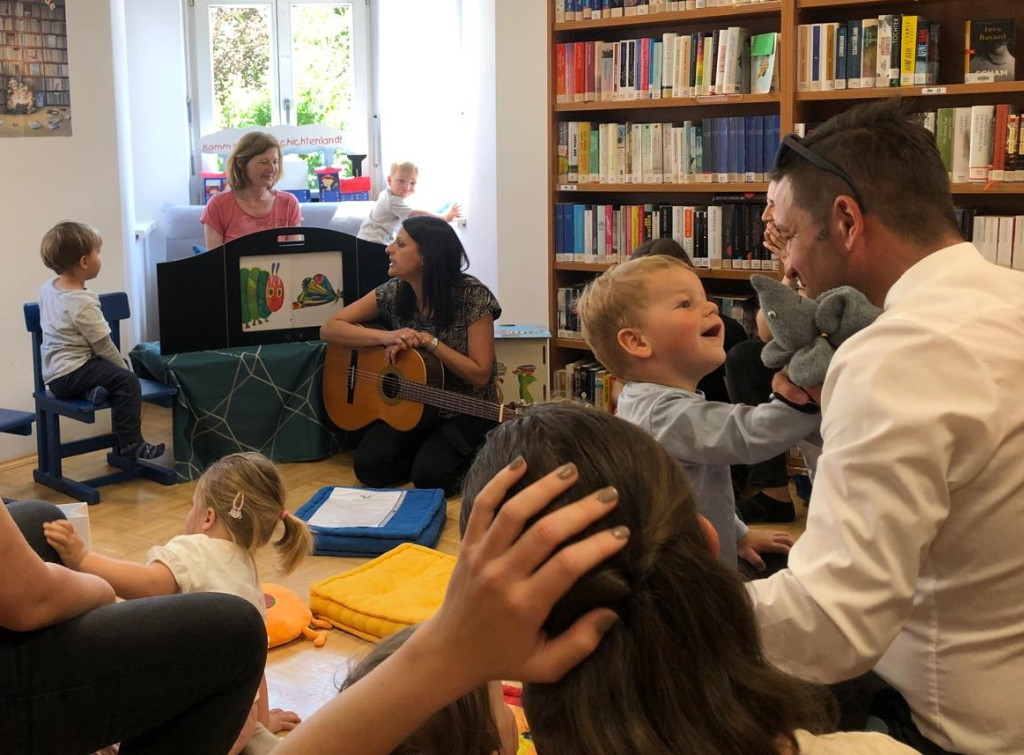 10 kleine Büchermäuse zwischen 2 und 3 Jahren konnte unsere Lesemaus Mio am 19. Mai in der Bibliothek zum Bilderbuchkino „Die kleine Raupe Nimmersatt“ begrüßen. Gemeinsam wurde vorgelesen, gespielt, gesungen, gezeichnet und bei einer Jause geplaudert. Vielen Dank an Silke und Cornelia vom EBZ (Elternbildungszentrum) Hatzendorf, die mit ihrer Gruppe bei uns zu Besuch waren und uns musikalisch unterstützt haben. Eltern und Kinder entdeckten mit Freude und Begeisterung unser Angebot.